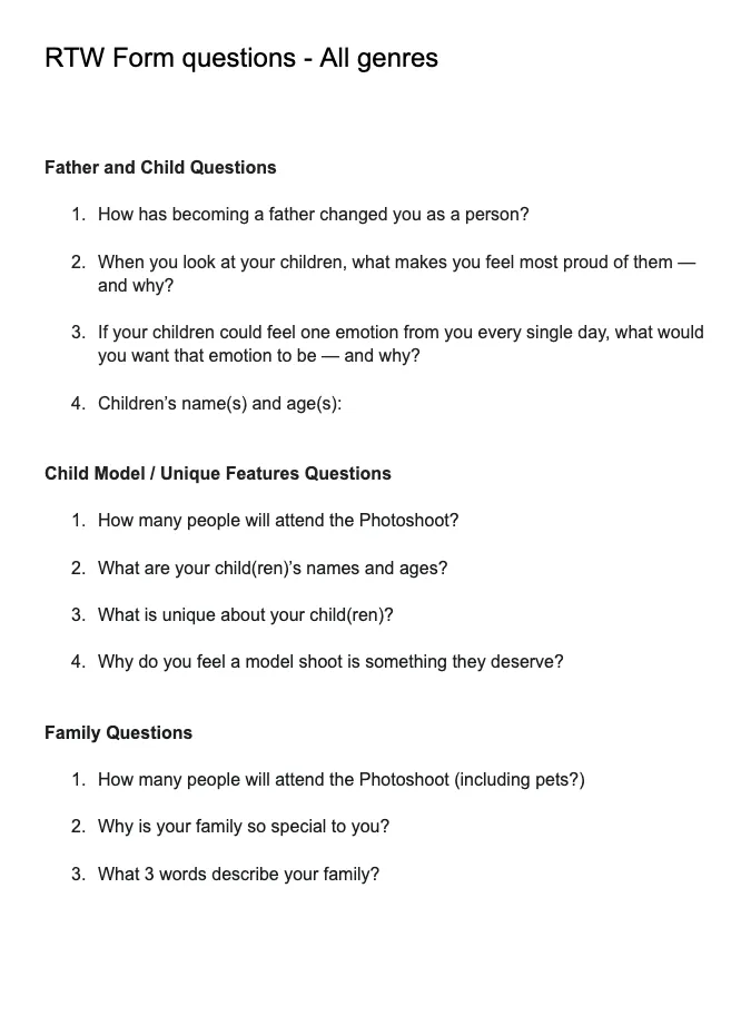 RTW Form questions - All genres